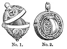 Au tournant du XVIe siècle, ils s'ornent d'incrustations de perles, émaux ou pierres précieuses, grenat, rubis, topaze, émeraude ou diamant. Munis d'un pied, ils s'ouvrent en quartiers sur de petits réceptacles pouvant réunir plusieurs parfums sous forme de pâte ou de poudre.
