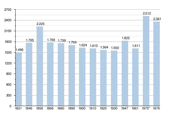 - Sources : INS, Rem. : 1831 jusqu'en 1970 = recensements, 1976 = nombre d'habitants au 31 décembre.
