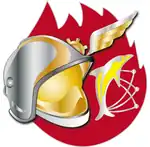 d'argent, un casque de pompier taré d'argent à senestre et rehaussé du premier métal, dépassé