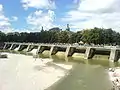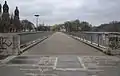 Le pont passe au-dessus d'un barrage qui relie les deux îles, l'Île aux Musées et l'Île Prater. À travers dix ouvertures de barrage, l’eau peut être évacuée du Grand Isar au Petit Isar. La jetée existante a été construite en 1966. Le Mariannenbrücke et le pont des Câbles relient directement l'île Prater à l’ouest du pont, à l’extrémité nord du pont.