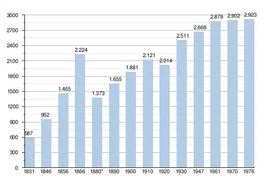 - Sources : INS, Rem. : 1831 jusqu'en 1970 = recensements, 1976 = nombre d'habitants au 31 décembre.
