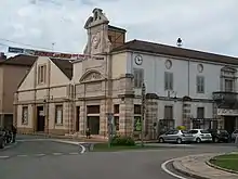 La ligne de Trévoux à Saint-Trivier-de-Courtes, gérée par la Compagnie des Tramways de l'Ain[7] empruntait l'actuelle D 933. La gare fut desservie de 1897 jusqu'en 1936, date à laquelle la ligne fut fermée[7]. Les trains s'arrêtaient sur la place Joubert à la gare de la commune qui étaient jadis des halles.