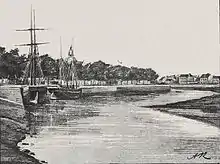 Les moulins de Pont-l'Abbé vus côté étang à marée basse.