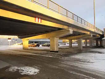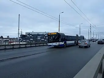 Le pont et les voies ferrées qui passent en dessous séparent quatre quartiers de Riga : Avoti, Grīziņkalns, Purvciems et Dārzciems.