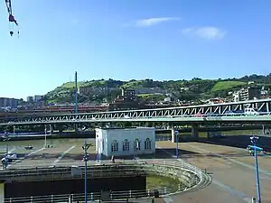 À une extrémité du pont, près du Parc Casilda Iturrizar, se trouve le Palais des Congrès et de Musique, connue comme Palais Euskalduna, nom tiré des chantiers navals éponymes situés dans ce même lieu, fermés à la fin des années 1980.