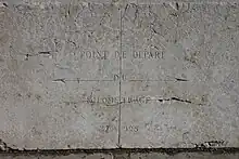 C'est au centre de ce pont que se trouve le point de départ du kilométrage, matérialisé par une ligne verticale sur les deux parapets. L'altitude précise (216,965 mètres) gravée de part et d'autre de cette ligne au centre du pont est plus élevée que l'altitude de Grenoble (214 mètres)[1].