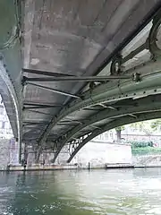 Il repose sur quatre arcs en fonte creux qui s'appuient sur deux culées très épaisses en maçonnerie, fondées sur du béton[2]. Ils sont reliés au tablier par des anneaux de diamètre décroissant[5]. Les arcs sont constitués de portions de demi-cylindres de section ovale, boulonnés les uns aux autres, de telle sorte que les joints de deux demi-cylindres se trouvent chaque fois au milieu du demi-cylindre opposé[2].