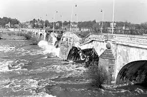 Le , l'armée française en débâcle détruit une arche côté sud. Les conduites d'eau sont rompues et, le lendemain, l'incendie provoqué en centre-ville de Tours par des tirs d'artillerie allemands ne peut être éteint, provoquant d'importantes destructions. Ensuite, le , la Wehrmacht, à son tour en débâcle, détruit trois arches côté nord. Ces arches, rapidement remplacées par un pont provisoire, sont ensuite reconstruites.