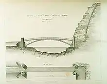 La rivière est franchie d'un seul élan par les 45,7 m de l’arche en fonte.