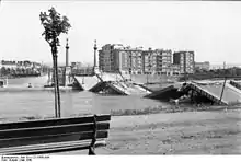 - 1940 : le pont est détruit sur ordre du ministère de la Défense nationale ; les quatre bronzes du tablier du pont coulent dans la Meuse mais seront repêchés et mis à l’abri plus tard[3].