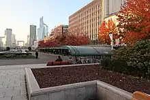 Certaines de ces lignes effectuent leur terminus au sein de la gare routière surplombant la station ; cet espace est prolongé vers le nord-ouest par une esplanade d'où se dégage une vue sur le quartier d'affaires de La Défense.