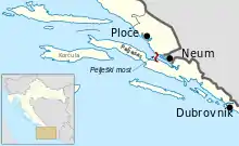 La région croate de Dubrovnik est séparée du reste de la Croatie par la bande côtière de Neum, seul débouché sur la mer de la Bosnie-Herzégovine[2]. Pour passer d'une partie de la Croatie à l'autre, il faut soit transiter par la Bosnie-Herzégovine via la ville portuaire de Neum, soit emprunter un ferry entre les villes croates de Trpanj et Ploče. Le projet de pont vise à permettre le passage de la région de Dubrovnik au reste de la Croatie sans passer par la petite portion de territoire bosnien à Neum[3].
