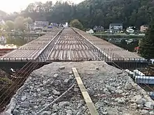Le , des travaux sont entrepris sur le pont, devant durer 60 jours ouvrables. Des problèmes d'instabilités sont alors découverts et les travaux sont suspendus. Il est alors décidé de détruire le tablier et de le reconstruire, laissant les piles intactes. Le pont doit être rouvert à la circulation au plus tôt en 2016 [3].