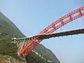 Il s’agit d’un pont en arc à tablier traversant d’une portée libre de 460 mètres, mesurée entre extrémités de la corde inférieure de l’arc, record du monde pour ce type de pont en arc CFST. La hauteur entre le sommet de l’arc et le tablier est de 130 mètres[Information douteuse], ce qui équivaut à un élancement de 1/3.8[1].