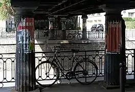 Il s'agit d'un pont métallique s'appuyant de chaque côté sur deux culées. Le pont présente un mince tablier d'environ 45 m de long pour 10 m de large et muni de chaque côté d'un garde-corps à barreaudage vertical[1]. Ce dernier s'appuie sur deux rangées de quatre colonnes de fonte.