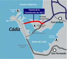 Le pont de la Constitution de 1812 franchit la baie de Cadix en aval du pont José León de Carranza (es), construit en 1969[1] ; il constitue le second franchissement de cette baie[2].