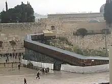 Une rampe en terre permettait autrefois aux visiteurs non-musulmans d'accéder au Mont du Temple par la Porte des Maghrébins. Après son effondrement en 2004, le pont en bois est reconstruit en 2007.