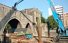 ![]() Le Pont des trous en 2005, avec la seconde version des arches construites après la Seconde Guerre Mondiale, détruites en 2019 pour construire la troisième version. |