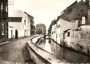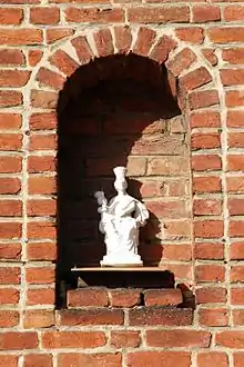 La façade du bâtiment qui domine le pont à l'angle de la rue du Pont du Christ et de la rue du Quai aux Huîtres est ornée d'une niche cintrée qui abrite une petite statue blanche de la Vierge à l'Enfant.