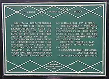 Dessiné par l'ingénieur et industriel français Ferdinand Arnodin, le pont transbordeur fut construit en 1906 par l'ingénieur britannique R. Haynes et ouvert le .