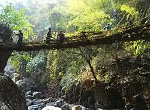 - (en) "Living Root Bridges" also living fig ladders as well as bridges.