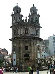 Pontevedra est la deuxième ville de Galice pour la richesse patrimoniale, après seulement Saint-Jacques-de-Compostelle[53]. Ville d'art et d'histoire, celle qu'on surnomme encore « La bonne ville » (nom attribué par Jean Froissart dans ses Chroniques au XIVe siècle)[54],[55] ou « La ville du Lérez », est riche d'un important ensemble monumental comprenant notamment des places d'origine médiévale et des édifices religieux comme la Basilique Sainte-Marie Majeure (XVIe siècle) à la façade Renaissance plateresque, l'Église de la Vierge Pèlerine (XVIIIe siècle) baroque à la façade arrondie, les Ruines du couvent Saint-Dominique gothiques (XIIIe siècle), l'église Saint-François gothique (XIIIe siècle) ou encore l'église Saint-Barthélemy baroque (fin du XVIIe siècle) ou le couvent Sainte-Claire gothique (XIVe siècle). Son centre historique concentre de nombreuses maisons à blason[47] (la Maison des Cloches du XVe siècle ou le palais García Flórez du XVIIIe siècle), des hôtels particuliers — hôtel des Mendoza, Villa Pilar — ainsi que d'anciens palais comme celui de Mugartegui (XVIIIe siècle), aujourd'hui reconverti en siège du Conseil Régulateur du vin Rias Baixas[56] ou le palais des Comtes de Maceda, aujourd'hui reconverti en Parador National de Tourisme[57],[58]. Un autre symbole majeur de la ville est le Perroquet Ravachol, dont la statue est au centre-ville[5]. La ville possède aussi un port de plaisance tout près de son centre historique. À l'heure actuelle Pontevedra est une ville en plein renouveau[59]. Elle est devenue la ville étendard du réseau des villes qui marchent et l'une des villes au monde où les enfants vivent le mieux, connue comme « La ville des enfants »[60],[61].