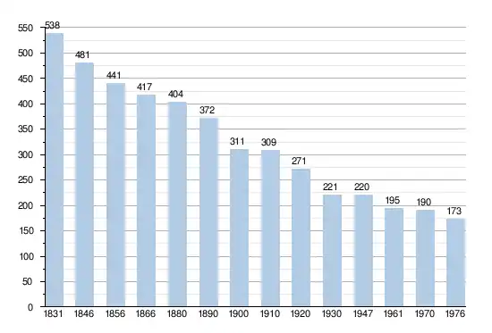 - Sources : INS, Rem. : 1831 jusqu'en 1970 = recensements, 1976 = nombre d'habitants au 31 décembre.