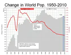 Le taux annuel de croissance de la population a culminé à 2,1 % sur la période 1962-1965, puis a ralenti de plus de moitié du fait de la baisse de la fertilité. En 2020, pour la première fois depuis 1950, il est tombé en dessous de 1 %, et l'ONU prévoit qu'il continuera à décroître[w 1].