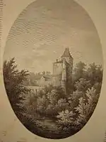 Le chevalier Joseph de Theux de Montjardin, auteur de la Seigneurie de Montjardin et de la Porallée Miraculeuse[7] a écarté ce dessin de son ouvrage, car il estimait que la représentation du château ne pouvait matériellement pas être fidèle.