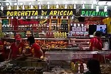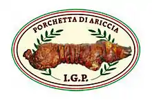 Porchetta di Ariccia est le nom d'une denrée alimentaire à base de porc rôti aux épices préparée traditionnellement sur l'ensemble du territoire la commune d'Ariccia dans le Latium.