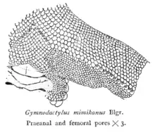 - (en) Cet article est partiellement ou en totalité issu de l’article de Wikipédia en anglais intitulé « Femoral pore » (voir la liste des auteurs).
