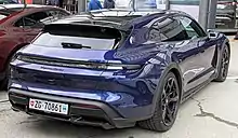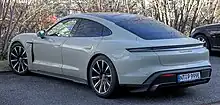 Le Taycan est une berline électrique commercialisée par le constructeur automobile allemand Porsche à partir de 2019[2]. Il s'agit du premier modèle 100 % électrique du constructeur de Stuttgart. Elle est dérivée en version baroudeuse cinq portes nommée Cross Turismo en 2021, et break de chasse sportif Sport Turismo en 2022.
