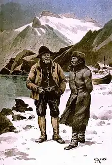 « Au-delà de la plage, ils pataugent dans un marécage herbeux et escaladent une butte. […] Aucun arbre, aucune fleur, au cœur de cet été n'égayait l'austérité. La pauvre verdure était, par plaques, recouverte de vieille neige. L'ensemble avait un air triste et froid. Grandiose certes, mais à la manière d'un monument funéraire quand l'éclat du marbre lisse évoque l'éternité… »