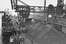En 1915, la société BHP (Broken Hill Proprietary) inaugure les Newcastle Steelworks (aciéries de Newcastle), installées en amont du port sur le site de Brownfield (dans le quartier actuel de Mayfield (en), à l'époque partie de la municipalité de Waratah, d'où le nom de Port Waratah)[3]. La Seconde Guerre mondiale entraine le développement de l'industrie lourde avec notamment l'ouverture en 1942 du State Dockyard (en) à Dykes Point, lançant des navires pour la Royal Australian Navy et l'US Navy. En 1951, l'autorité portuaire lance le chantier de réunion de trois îles sur la rive gauche au nord de la ville pour former le vaste terre-plein de l'île Kooragang (en). En 1957, le chantier de construction navale Carrington Slipways ouvre ses portes à Carrington ; le chantier déménage en 1972 à Tomago plus en amont pour avoir plus de place et change de nom à la suite du rachat par Forgacs Group (Forgacs Shipyard Tomago).