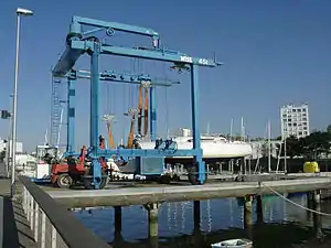- une grue élévatrice avec un terre-plein permettant de mettre à terre les bateaux plus importants pour l'entretien, les réparations ou le stockage.