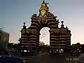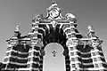Les architectes de la porte étaient Francesco Battaglia et Stefano Ittar. Le monument est fait d'une alternance de pierre blanche de Syracuse et de blocs de lave sombre locaux. En haut au centre de l'arc se trouve désormais une horloge, entourée de symboles allégoriques, dont un aigle et une statue rappelant l'éléphant noir u Liotru, symbole de Catane. À l'origine, en lieu et place d'une horloge, se trouvait un buste en marbre du roi Bourbon. Flanquant ce tympan, au deuxième niveau se trouvent deux anges avec des trompettes. Ces derniers sont flanqués de deux représentations sculpturales du Trophée d'armes[1]. Sous ces étalages d'armes et d'armures sont inscrites deux phrases : l'une dit Litteris armatur (« Armée avec les lettres ») et l'autre Armis decoratur (« Décorée avec les armes »). Sur le côté est, le bouclier du tympan représente un phénix se levant avec un cartouche latin indiquant Melior de cinere surgo (« Je renais meilleure de mes cendres »), ce qui s'applique à Catane, qui a souvent nécessité une reconstruction en raison de l'activité volcanique et des tremblements de terre.