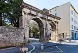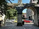 La porte d'entrée se dresse en face de la citadelle moderne, qui est construite sur le site de l'ancien capitole. Comme mentionné, elle se compose de deux arches, bien qu'il puisse y avoir à l'origine trois ouvertures cintrées [5].