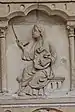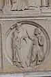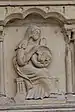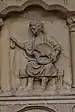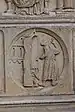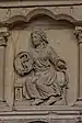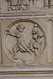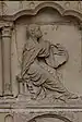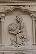 Au-dessous des apôtres, vingt-quatre bas-reliefs, disposés sur deux rangs superposés, illustrent douze « vertus » (rang supérieur, dans des arcs trilobés soutenus par des paires de colonnettes), à chacune desquelles se rapportent les « vices » (rang inférieur, dans des médaillons séparés par des triglyphes). Les premières sont représentées comme des allégories féminines sur un trône, tandis que les dernières sont représentées par des scènes concrètes de péché, selon le schéma suivant[24] :