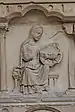 Le soubassement a été conçu par Viollet-le-Duc, qui s'est inspiré des éléments architecturaux de la cathédrale de Laon. Il porte en haut « Cinq prophètes » et en bas, dans des médaillons, les « Sept arts libéraux » représentés selon le traité de Martianus Capella sous la forme de figures féminines ayant chacune des attributs particuliers : en partant de la gauche, la Médecine, la Dialectique, la Géométrie, la Philosophie, la Musique, la Grammaire et l'Astronomie[30]. Sur les piliers latéraux qui soutiennent l’architrave, également complètement reconstruits au XIXe siècle, les Vierges sages (à gauche) et les Vierges folles sont représentées en bas-relief, en référence à la Parabole des dix vierges présente dans l'Évangile selon Matthieu (Mt 25,1-13)[31].
