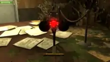- « Virgil : Besoin d'un mot de passe ? Il devrait être dans le coin. Regardez autour. Ah ! Voilà, essayez ça. 20-56. J'ai vu ce numéro pas mal de fois par ici. Étrange... »[17]