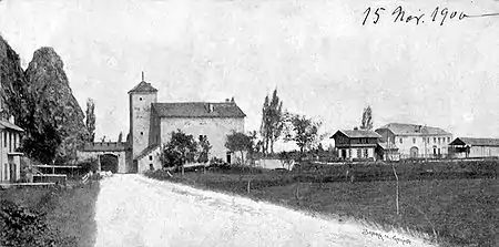 En 1597, la construction d’un château commence et ce sont encore les communes du dizain qui vont le payer. Quant à Vouvry et Vionnaz, il leur faut assurer le paiement de la solde des gardes chargés de la surveillance du passage, peut-être du haut de la petite tour dont on distingue les ruines sur les photos anciennes. L’époque est troublée, des armées étrangères traversent souvent le pays. Dans un acte notarial de 1639, on fait mention du rempart de la Porte-du-Scex.