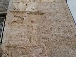 La porte était à l'origine entièrement recouverte de fines et très belles décorations sur le thème des divinités et des scènes de combats mythologiques des dieux et héros auxquels s'ajoutaient des scènes historiques représentant l'armée romaine. Ces reliefs sont malheureusement fortement effacés par la corrosion du temps, l'âge de la porte (1 800 ans), les nombreux incendies et la fragilité de la pierre utilisée.