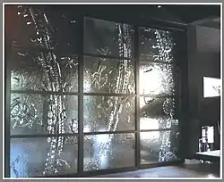 Le châssis à galandage est une structure métallique incorporée dans la cloison permettant au panneau de disparaître lors de l'ouverture de la porte. Il contient également un ou plusieurs rails et toujours un guide au sol. La porte coulissante à galandage peut être équipée ou non d'un chambranle (aussi appelé habillage[4]).