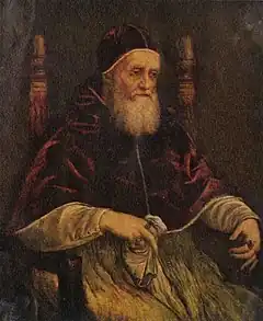 - (en) Cet article est partiellement ou en totalité issu de l’article de Wikipédia en anglais intitulé « Portrait of Pope Julius II (Raphael) » (voir la liste des auteurs).