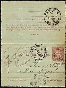 Alors qu'à ses origines, le pneumatique n'était qu'un vecteur auxiliaire de la télégraphie ne prenant en charge que des dépêches ayant été ou devant être transmises par télégraphe, son ouverture au public en 1879 change sa nature[11]. Désormais le réseau accepte la correspondance postale. La taxation ne se fait plus au mot et les utilisateurs doivent formuler leurs messages sur des papiers réglementaires, les entiers postaux, qui se présentent sous la forme de cartes et d'enveloppes[11]. Ces formulaires préaffranchis comportent un timbre directement imprimé sur le papier[11].