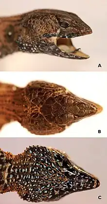- Chávez & Vásquez, 2012 : A new species of Andean semiaquatic lizard of the genus Potamites (Sauria, Gymnophtalmidae) from southern Peru. ZooKeys, no 168, p. 31–43 (texte intégral).