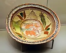 Dans une latrine de Strasbourg utilisée de 1649 à 1730 ont été découvertes de grandes quantités de céramique[14], dont des plats creux, des écuelles et assiettes à décor polychrome, ornés à la barbotine de motifs végétaux, dont des tulipes et des grenades ou encore d’animaux tels le cerf ou l’oiseau, et parfois même des humains. Ces thèmes, qui font probablement allusion à la fécondité, vont prospérer jusqu’au début du XXe siècle sur les plats et pots, généralement destinés à être offerts en cadeau de mariage.