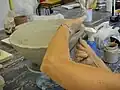Certaines poteries africaines sont modelées dans une corbeille tressée, la jarre est roulée dans la corbeille tandis que le potier frappe l'intérieur de la paroi avec un galet. De la même manière ces jarres conservent l'empreinte de la trame du panier.