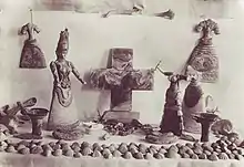 Les lieux de culte sont les sommets des montagnes, les grottes et les cavernes, les sanctuaires domestiques.