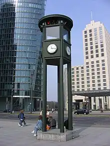 - Potsdamer Straße 131 : centre de diffusion de Power Radio (de). C'est d'ici qu'émettent déjà Radio 100 (de)[20], Energy Berlin, Radyo Metropol FM (de) et Hundert,6 (de). Devant le centre de diffusion, près de la Potsdamer Straße et de la Bülowstraße, se trouve un monument (parlant), érigé à l'initiative du maire de Berlin, qui rappelle le lancement de la première station privée Radio 100 à Berlin en 1987.